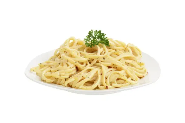 Creamy white sauce pasta made with butter, cheese, and heavy cream. Often served with grilled chicken